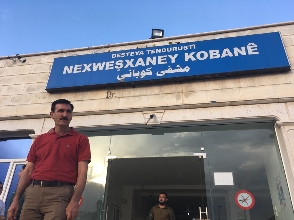 Ozlem mi accompagna all’ospedale civile di Kobane al tramonto. Scendo ai piedi della scalinata che conduce all’ingresso dove mi attende il dottor Abdullah Ahmed, direttore sanitario, ma mi attardo: di nuovo devo fare i conti con i miei ricordi. A fine febbraio 2015, la clinica ospedaliera si trovava dentro una sorta di garage sporco di polvere e detriti, disordinato, ancora in piena emergenza e tagliato fuori dagli aiuti internazionali.