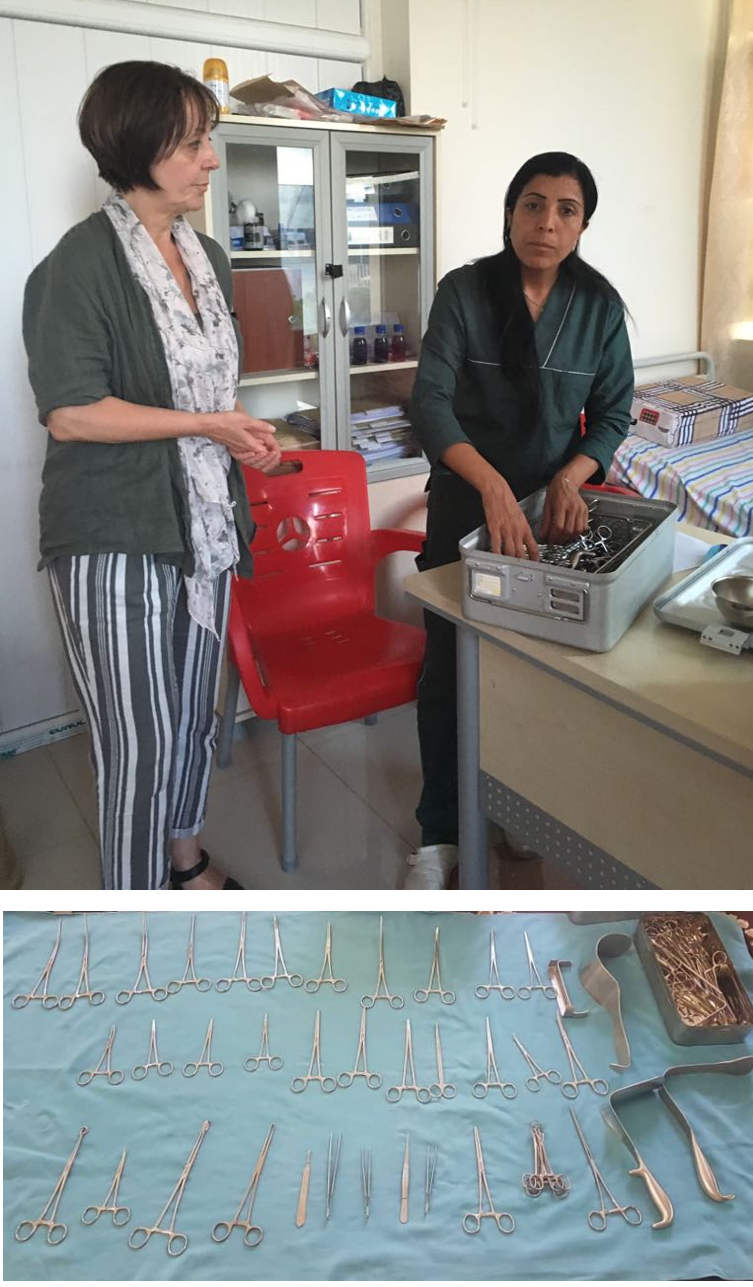 Raggiungo il dottor Ahmed che indossa maglietta rossa e pantaloni beige, venuto appositamente a incontrarmi nonostante sia in vacanza. Sono lì per consegnargli un kit chirurgico e due aspiratori acquistati con il finanziamento della Fondazione Wanda Di Ferdinando, nell’ambito del progetto Cooperation 4 Kobane promosso dall’Associazione Reciproca e dalla Cooperativa Labirinto di Pesaro, dalla Coop Noncello Cooperativa Sociale di Pordenone, Uiki Onlus, e il Kobane Reconstruction Board (Comitato per la ricostruzione di Kobane). Nel suo ufficio il dottore mi prega di attendere qualche minuto finché non fa ingresso una donna in divisa, pantaloni e tunica verde scuro. «Le presento la dottoressa Merwe Mahmud Alì, è lei che ha richiesto questa fornitura medica per il reparto pediatrico». Ci scambiamo un rapido saluto, lei non ha occhi se non per la pesante scatola di acciaio che contiene i ferri chirurgici. Ne sfila il coperchio. «Ne abbiamo molto bisogno. Ringrazi le persone che si sono prodigate per far giungere questo aiuto» mi dice seria. Capisco che è di poche parole, ha fretta di tornare in reparto quindi le assicuro di riportare le sue parole.